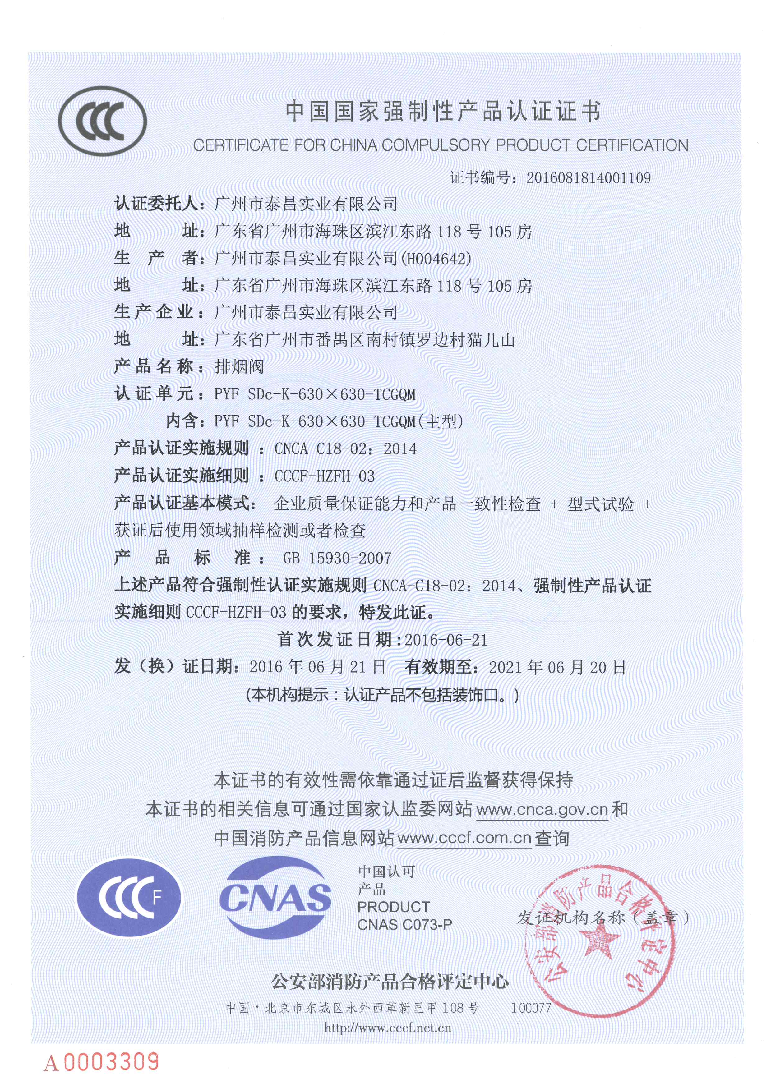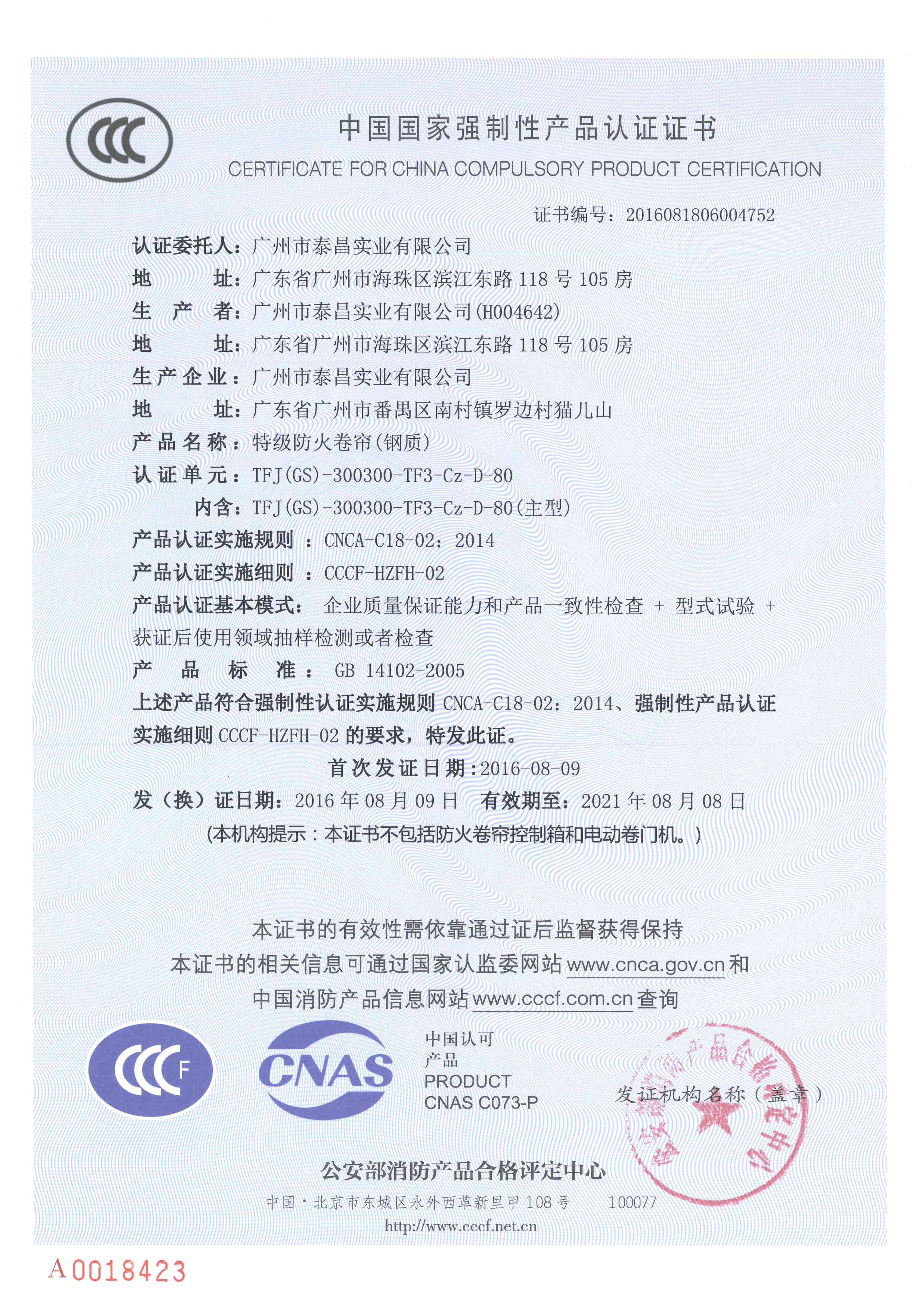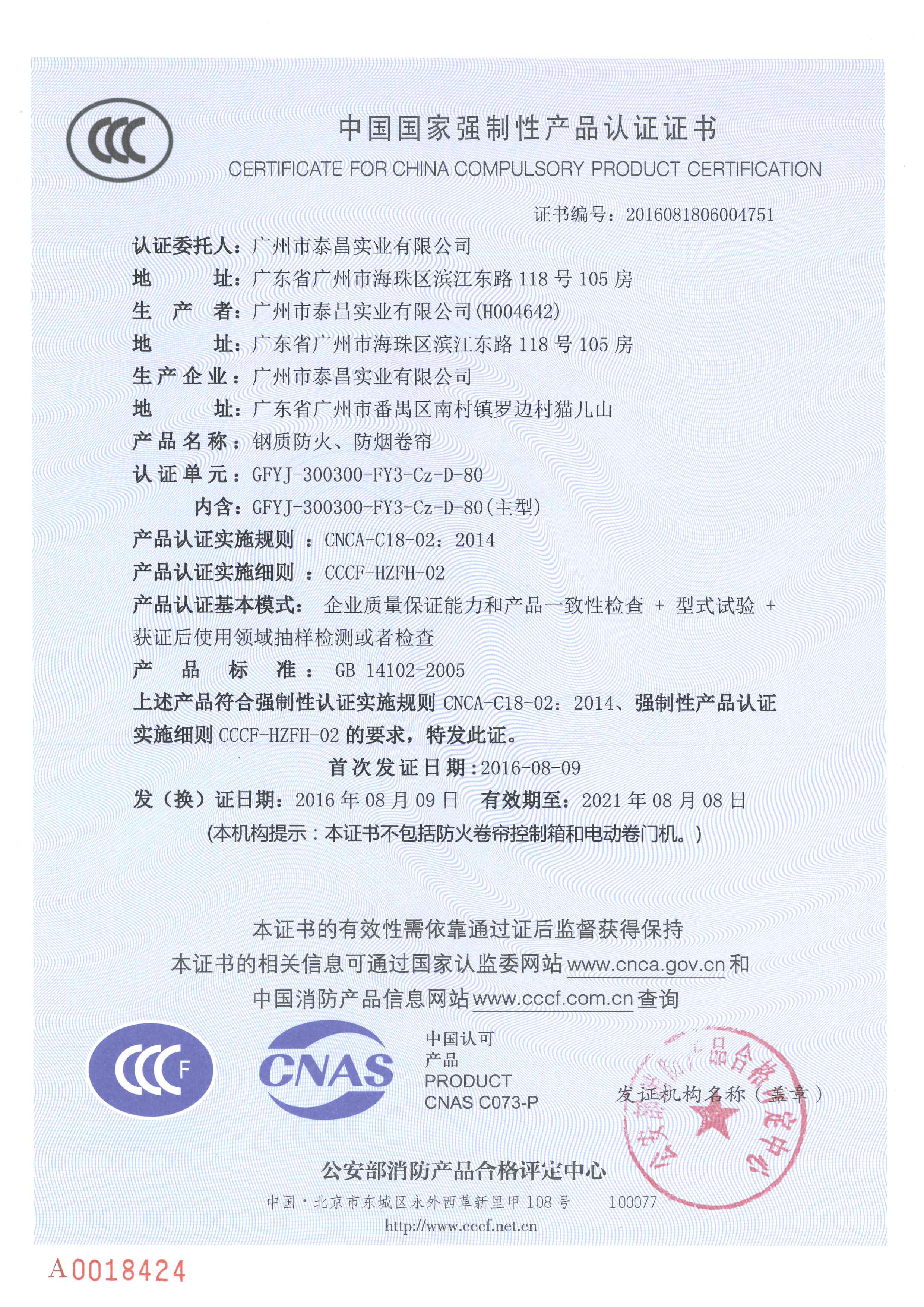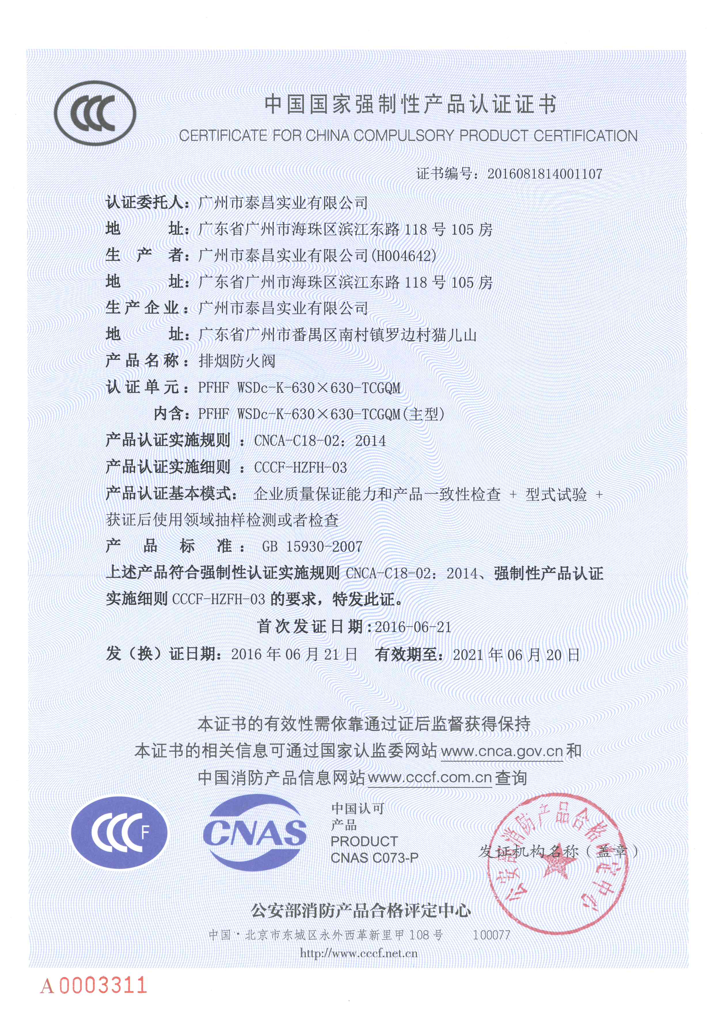 公司立足消防事业二十余载,现已发展成集消防工程安装、消防产品生产、销售、消防设施维保、检测于一体的综合性消防公司。现公司通过的3C认证的产品有:排烟阀;排烟防火阀;钢质特级防火卷帘;钢质防火、防烟卷帘;无机特级防火卷帘。