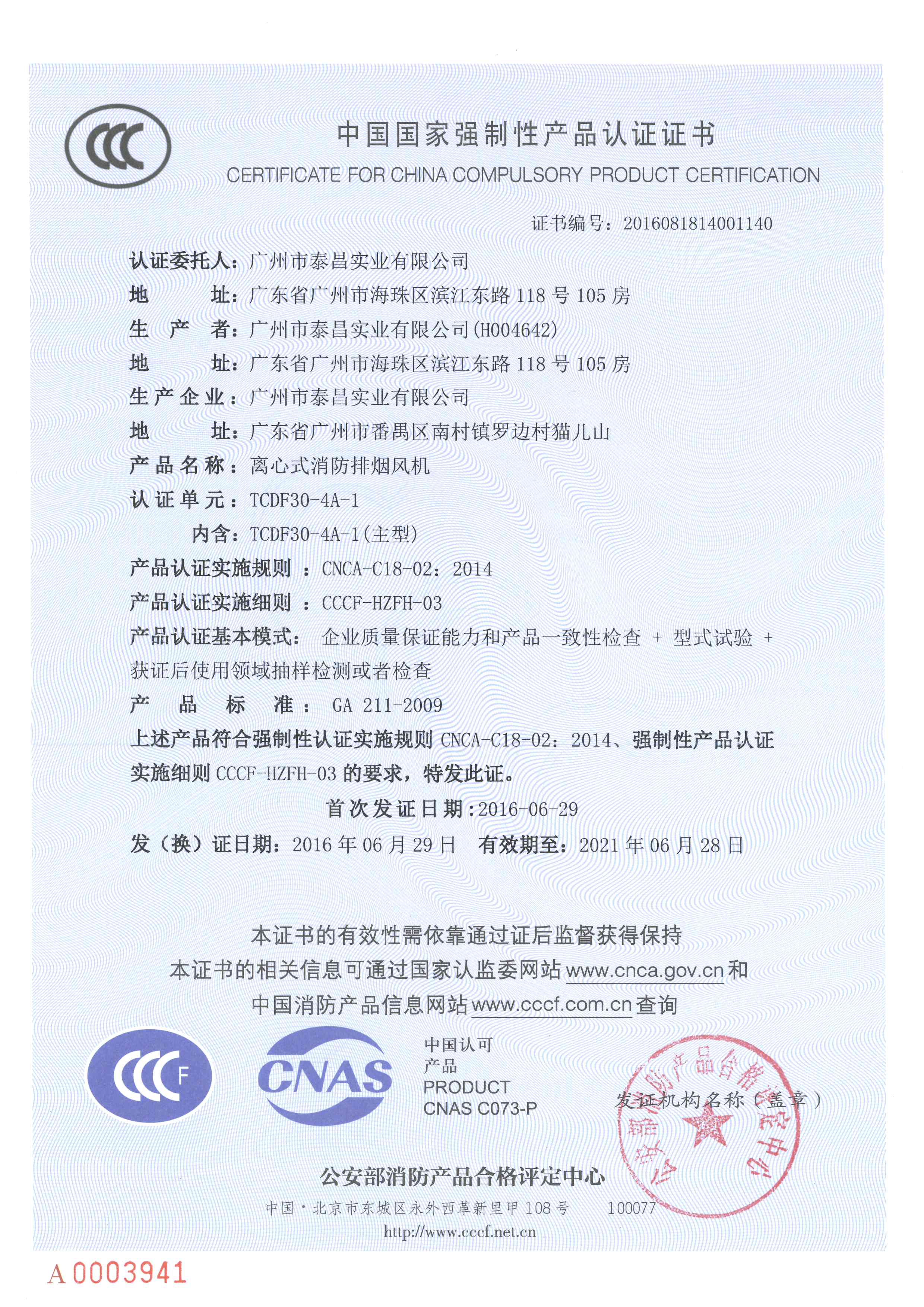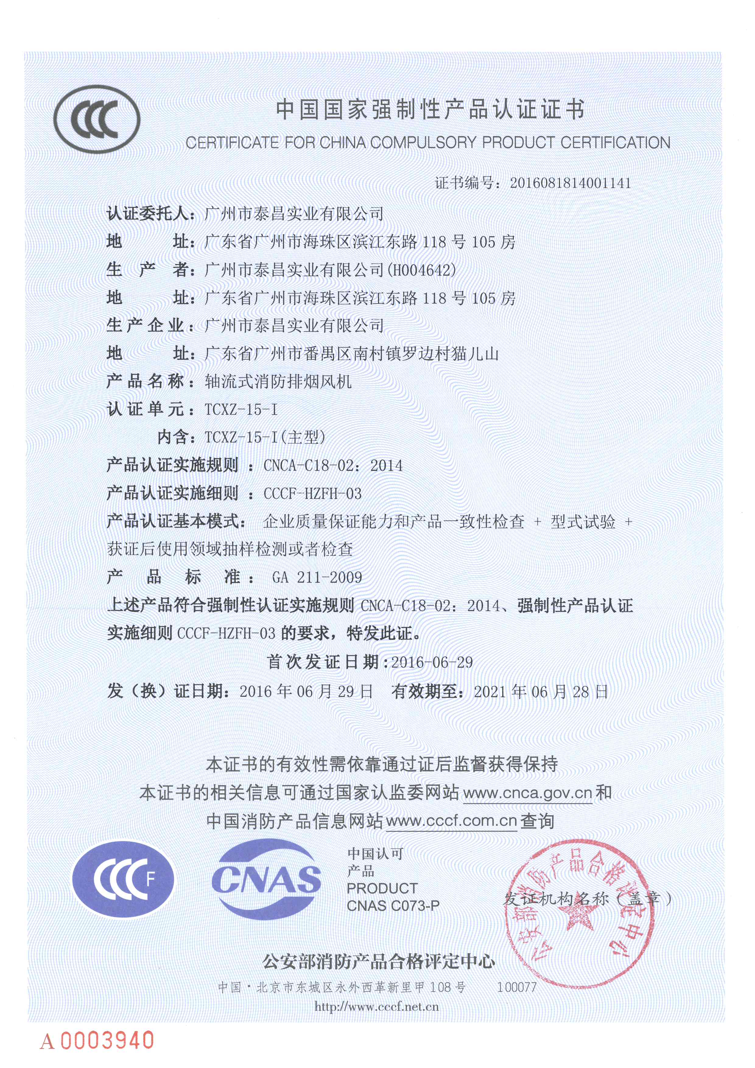轴流式消防排烟风机3C认证 防火阀3C认证