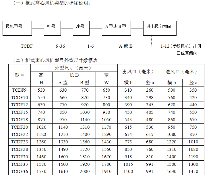 风机型号规格标注说明: