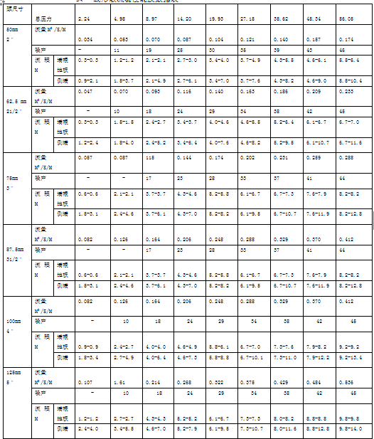2、线型散流器性能及数据表