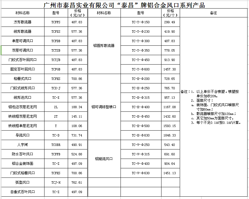 广州市泰昌实业有限公司是生产消防产品的专业厂家、生产防排烟阀、排烟风机、管道阀门等空调配件系列产品;风口依据JG/T14-1999标准研制生产,满足产品配套要求。