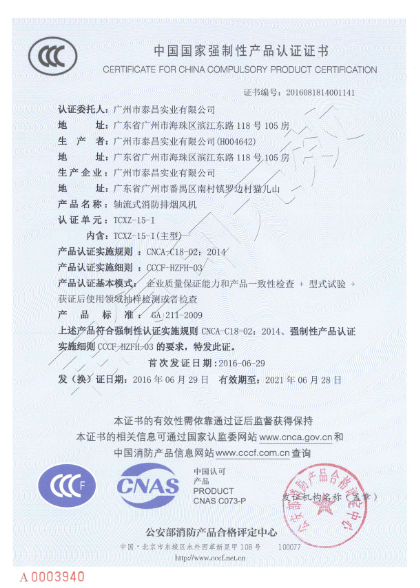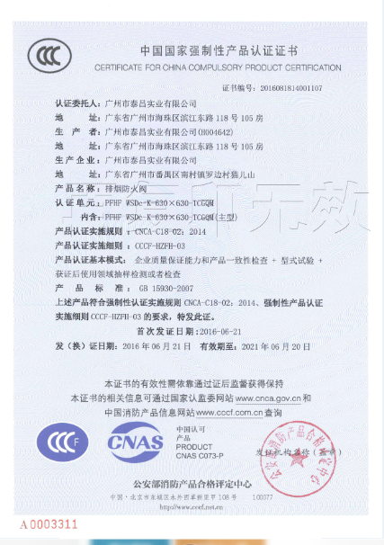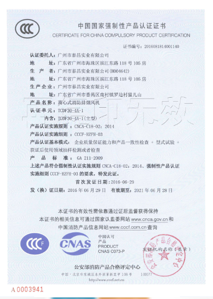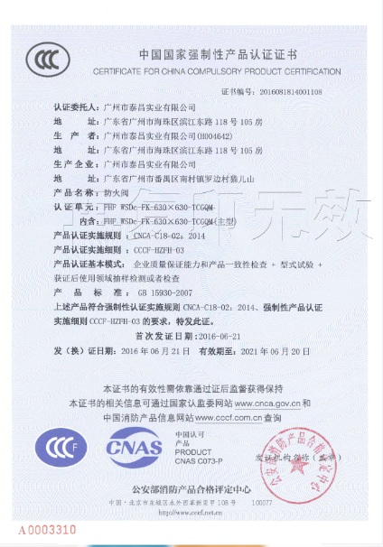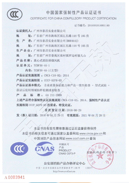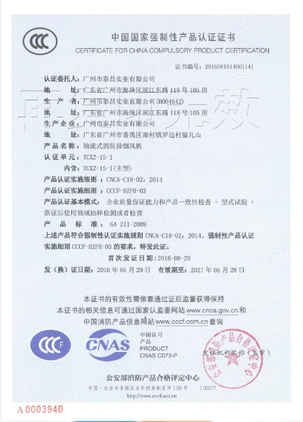 2016年,泰昌公司顺利通过系列产品的3c认证,获得系列产品的3c认证证书。