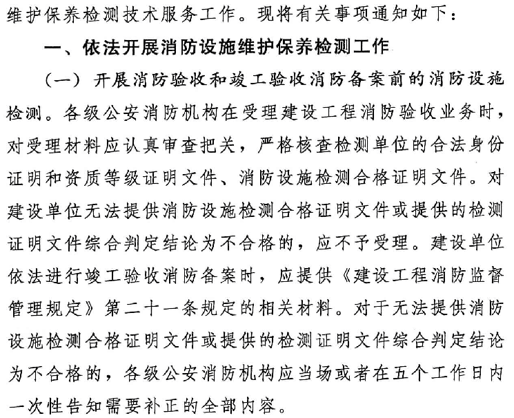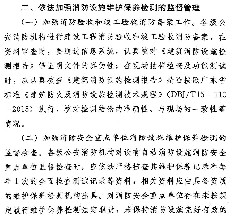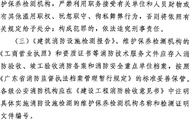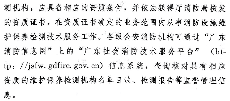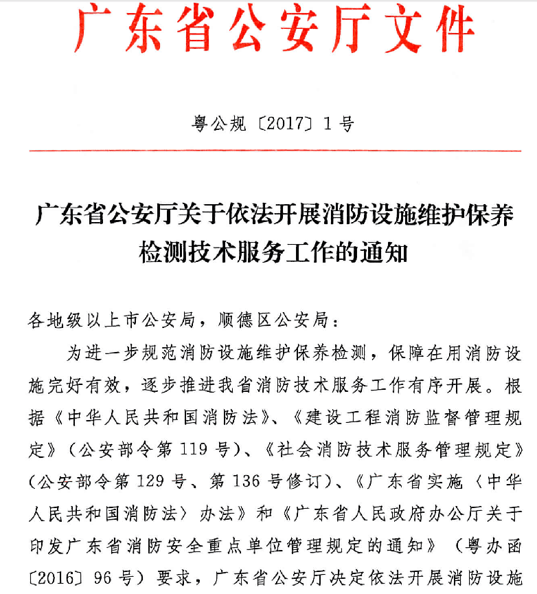 七、《广东省公安厅关于依法开展消防设施维护保养检测技术服务工作的通知》(粤公规【2017】1号)